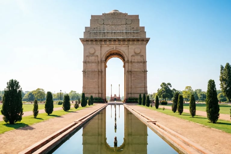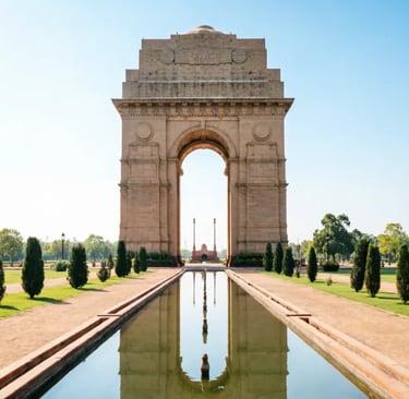 India Gate, Delhi – War memorial arch, evening lights, national pride.
