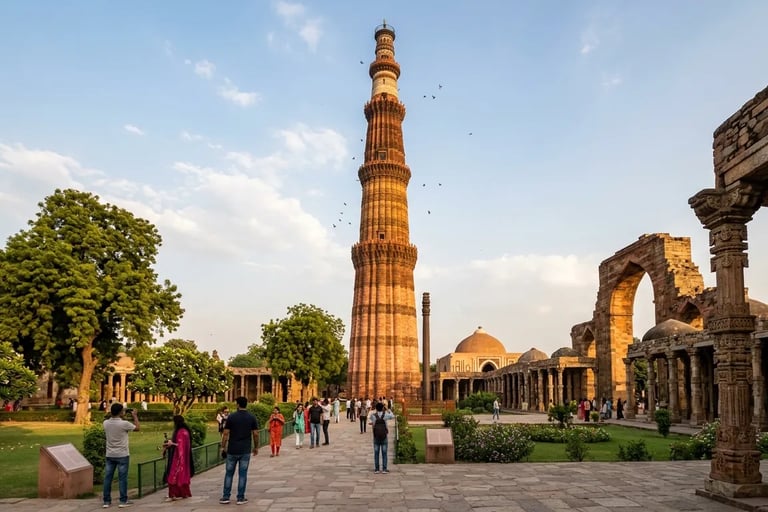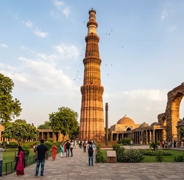 Qutub Minar, Delhi – Tallest brick minaret, Indo‑Islamic carvings.