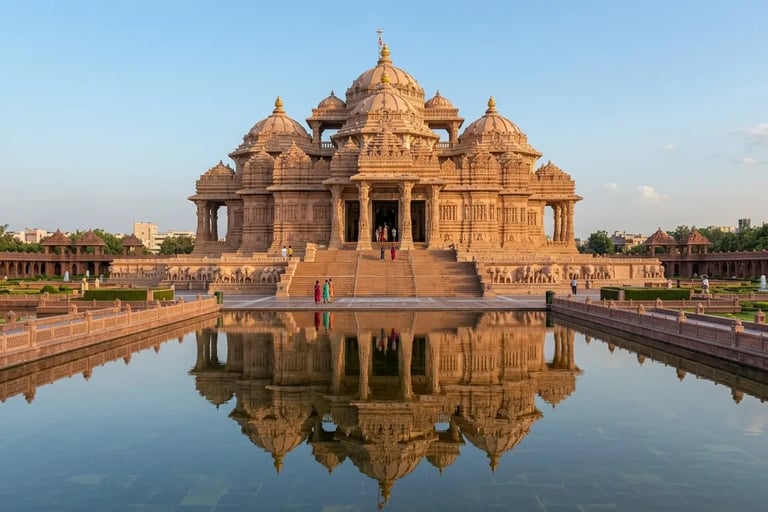 Akshardham Temple, Delhi – Modern Hindu temple, exhibitions, musical fountain.